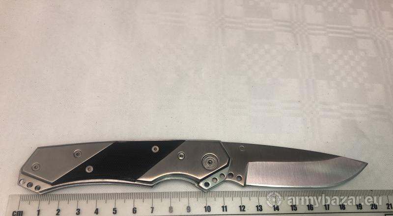 Opis: Numer produktu: 221811 Rodzaj stali: AISI 420 Długość głowni 7,50cm Grubość głowni 3mm Długość całkowita: 19cm Ostrze: Plain Typ głowni: Drop Point Typ blokady: Liner-Lock