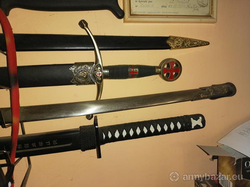 Opis: Sprzedam 4 repliki mieczy i szable miecz templariusze katana miecz króla Salomona i szabla carska