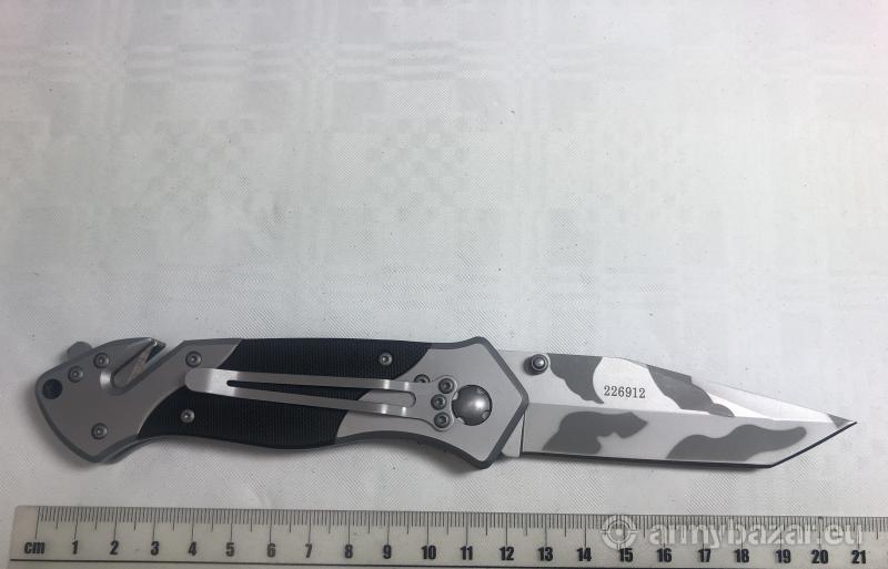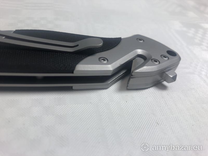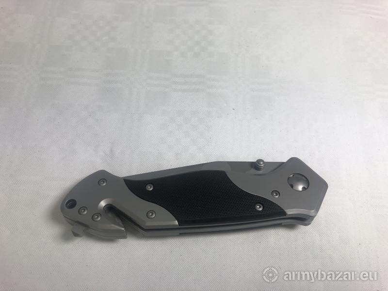 Opis: 226912 - średniej wielkości składny nóż ratowniczy niemieckiej firmy Herbertz wyposażony w niezbędne funkcje ratownicze. Głownia ze stali nierdzewnej AISI 420 zapewnia solidność, odporność na uszkodzenia oraz dużą wytrzymałość. Rękojeść wykonana z matowej stali nierdzewnej. Posiada ostrze do przecinania pasów bezpieczeństwa, lin, sznurków, a także posiada kołek do bicia szyb. Metalowy klips. Niezbędne narzędziem na biwaku, wyprawach lub do noszenia na co dzień. Stan: nowy Długość ostrza:8,50cm Długość całkowita po rozłożeniu: 21cm NO.162913