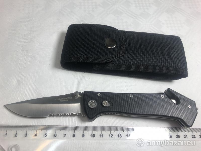 Opis: Numer produktu: 209913 Rodzaj stali: AISI 420 Długość głowni: 89 mm / 3.5" Grubość głowni: 3 mm / 1.12 Długość całkowita rozłożona: 225 mm / 8.86" Waga: 145 g / 5.11 oz Ostrze: Combo Typ głowni: Clip Point Typ blokady: Liner-Lock z dodatkowym zabezpieczeniem Rodzaj rękojeści: ABS Producent: C. Jul. Herbertz GmbH, Solingen