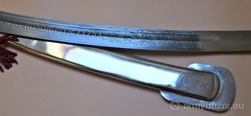 Opis: Polska szabla oficerska wz 21 A.Mann z pochwą. Sygnowana, grawerowana. Drewniana rękojeść. Replika użytkowa. Odbiór osobisty Warszawa/Piaseczno lub wysyłka po wpłacie.